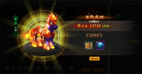 3)坐骑进阶成功后,将获得更炫更酷的外型和更加强大的属性;